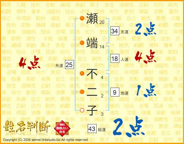 瀬端不二子さんの総運は43画の2点!