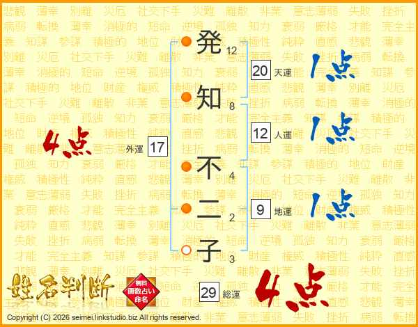 発(12画)知(8画) 不(4画)二(2画)子(3画)