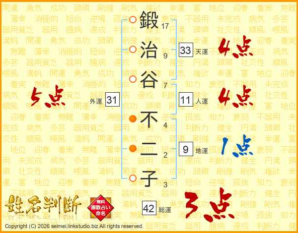 鍛治谷不二子さんの総運は42画の3点!