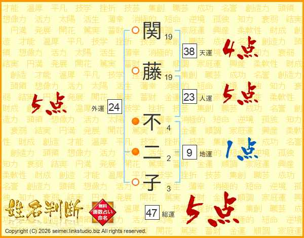 関藤不二子さんの総運は47画の5点!