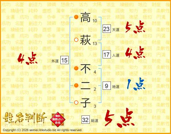 高萩不二子さんの天運は23画の5点!