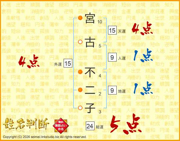 宮古不二子さんの外運は15画の4点!
