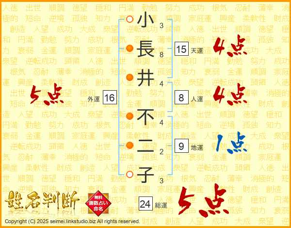 小(3画)長(8画)井(4画) 不(4画)二(2画)子(3画)