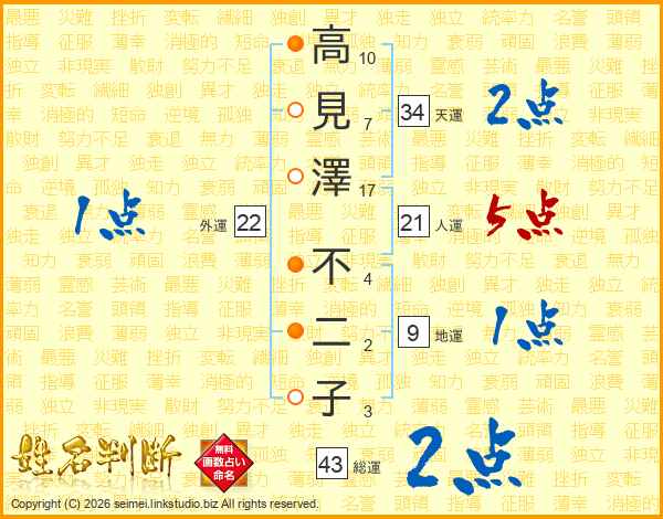 高見澤不二子さんの人運は21画の5点!