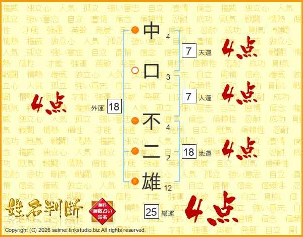 中口不二雄さんの総運は25画の4点!