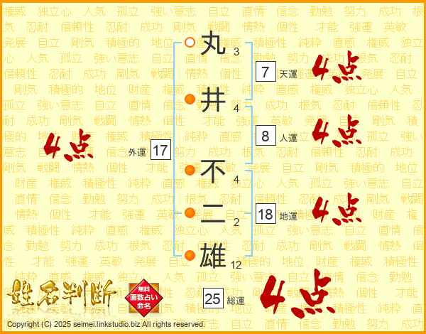 丸(3画)井(4画) 不(4画)二(2画)雄(12画)