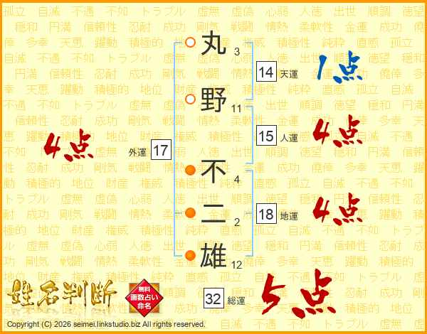 丸野不二雄さんの天運は14画の1点!