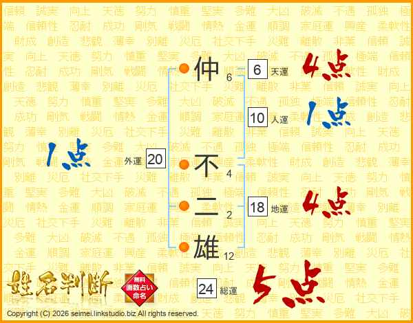 仲不二雄さんの総運は24画の5点!