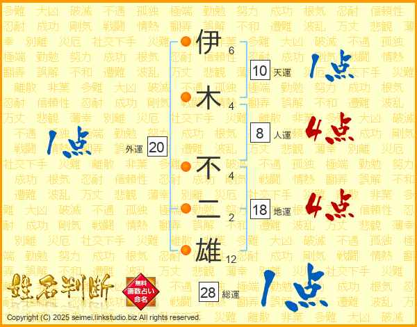 伊(6画)木(4画) 不(4画)二(2画)雄(12画)