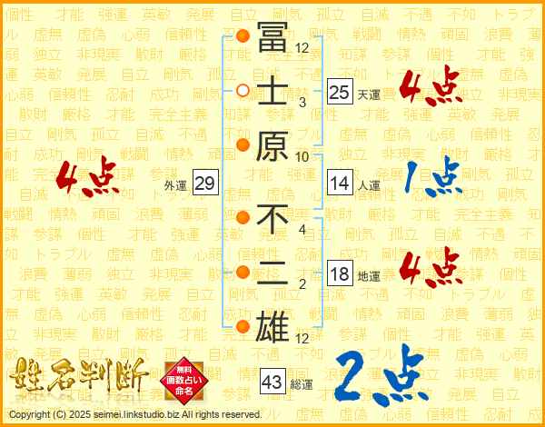 冨(12画)士(3画)原(10画) 不(4画)二(2画)雄(12画)