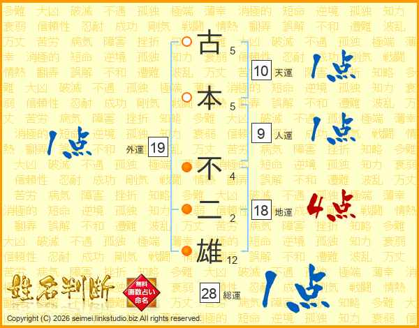 古本不二雄さんの総運は28画の1点!