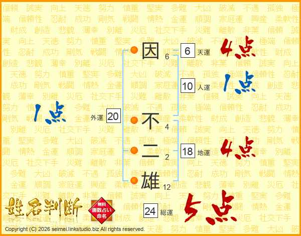 因不二雄さんの総運は24画の5点!