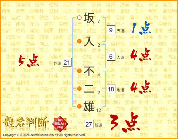 坂入不二雄さんの総運は27画の3点!