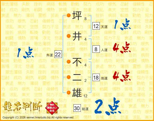 坪(8画)井(4画) 不(4画)二(2画)雄(12画)