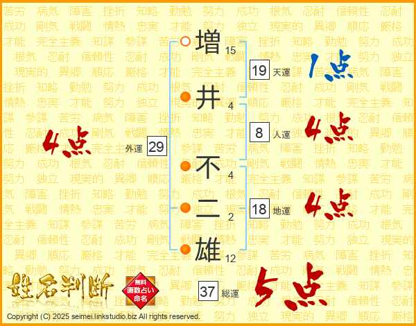 増(15画)井(4画) 不(4画)二(2画)雄(12画)