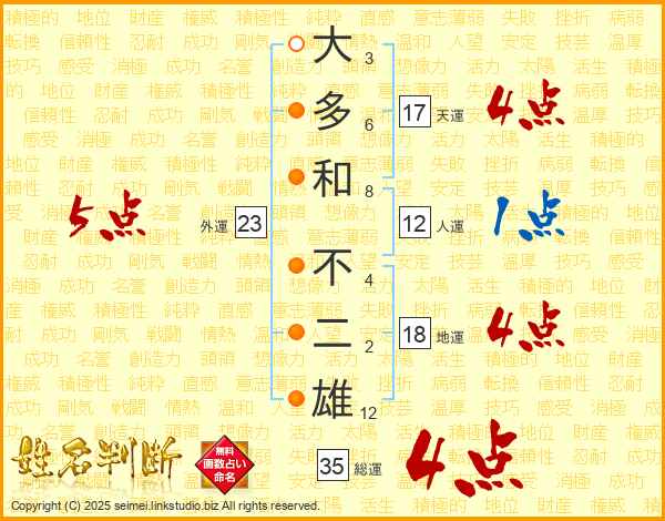 大多和不二雄さんの総運は35画の4点!