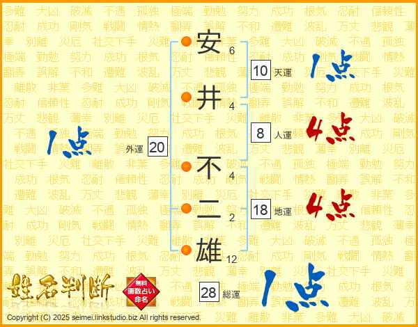 安(6画)井(4画) 不(4画)二(2画)雄(12画)