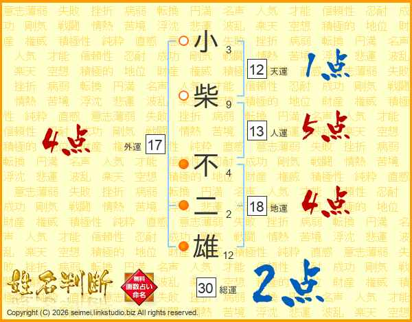 小柴不二雄さんの総運は30画の2点!