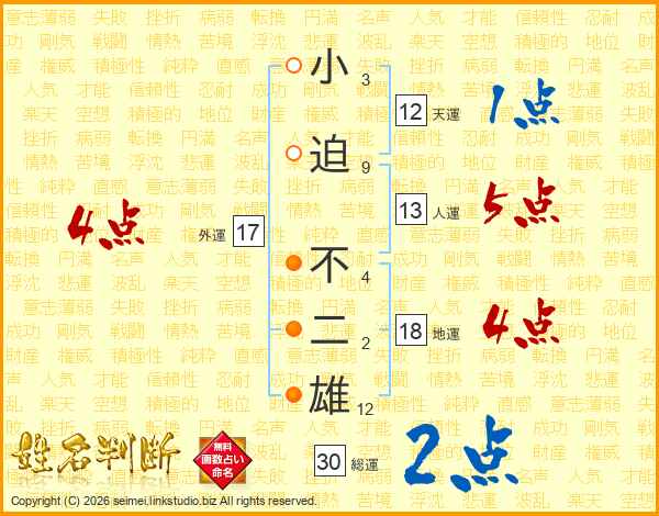 小迫不二雄さんの総運は30画の2点!