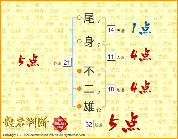尾身不二雄さんの総運は32画の5点!