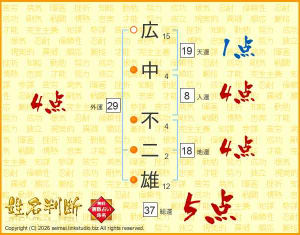 広中不二雄さんの外運は29画の4点!