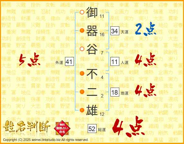 企画力 独創性 強運 功利 創造性 財運 先見 健命 勇猛