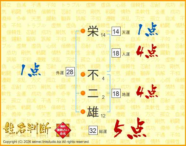 栄不二雄さんの総運は32画の5点!