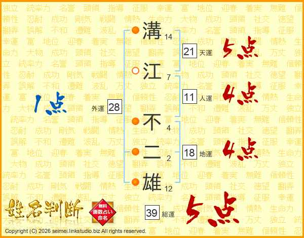 溝江不二雄さんの総運は39画の5点!