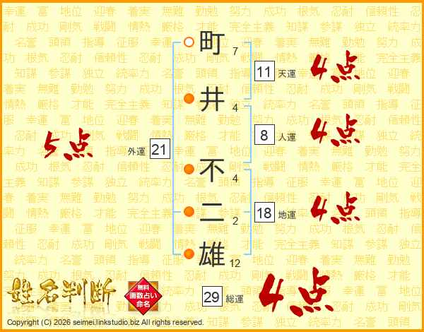 町井不二雄さんの総運は29画の4点!