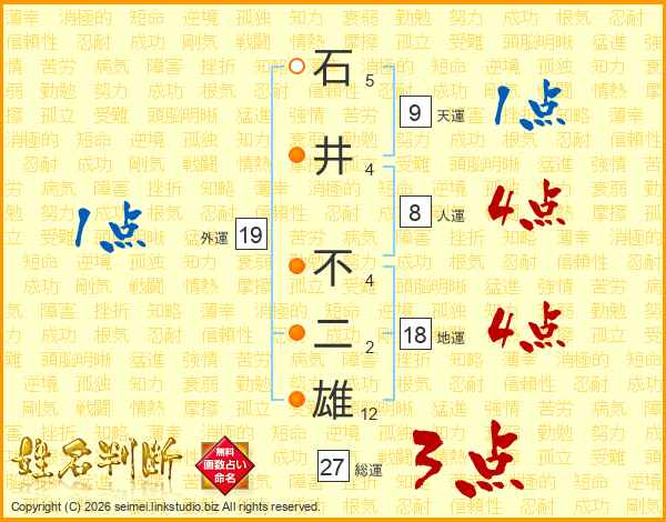 石井不二雄さんの総運は27画の3点!
