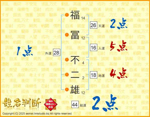 福冨不二雄さんの総運は44画の2点!