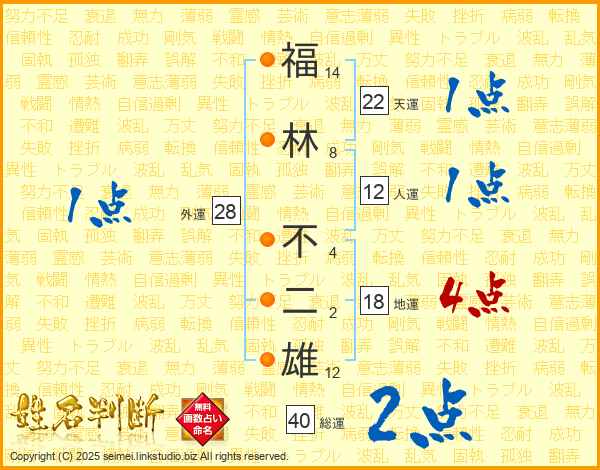 福林不二雄さんの総運は40画の2点!