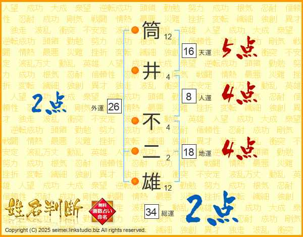 筒(12画)井(4画) 不(4画)二(2画)雄(12画)