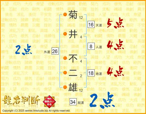 菊(12画)井(4画) 不(4画)二(2画)雄(12画)