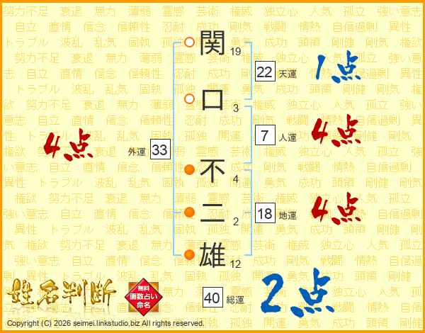 関口不二雄さんの総運は40画の2点!