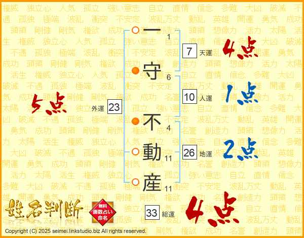 一(1画)守(6画) 不(4画)動(11画)産(11画)