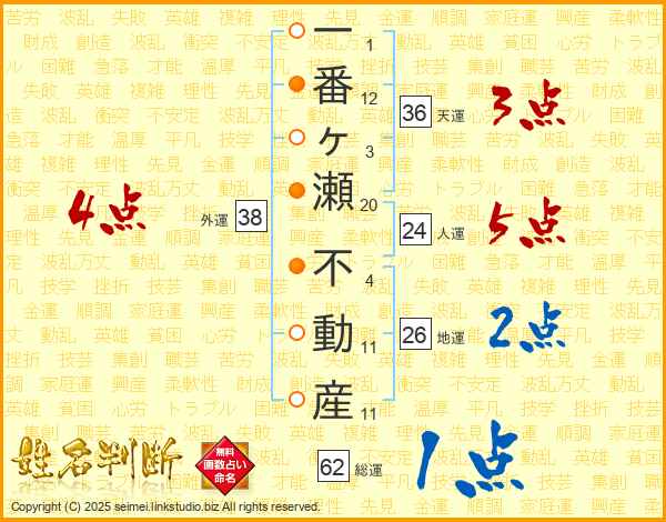 一番ヶ瀬不動産さんの人運は24画の5点!