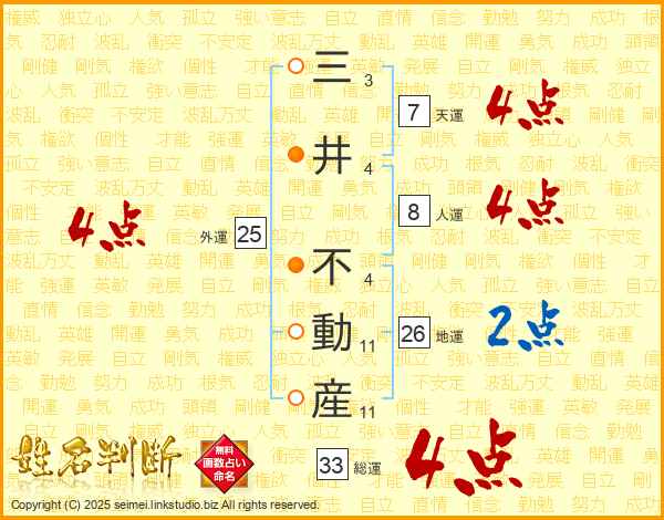 三(3画)井(4画) 不(4画)動(11画)産(11画)