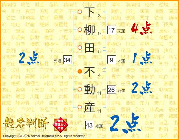 下柳田不動産さんの天運は17画の4点!