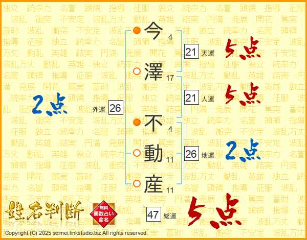 今澤不動産さんの人運は21画の5点!