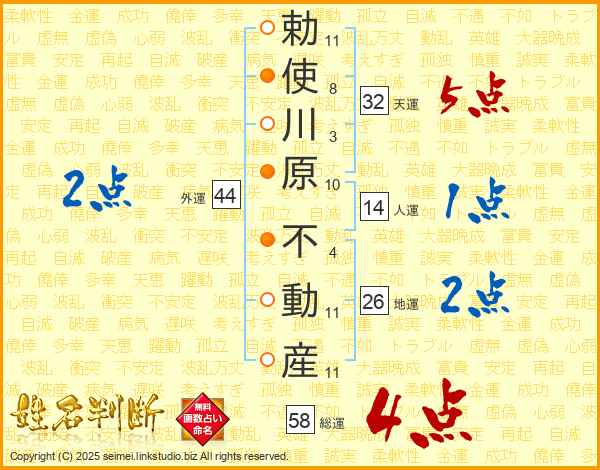 勅使川原不動産さんの天運は32画の5点!