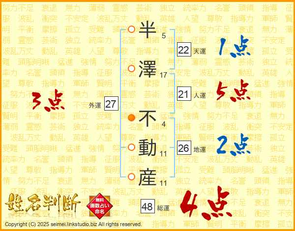 半(5画)澤(17画) 不(4画)動(11画)産(11画)