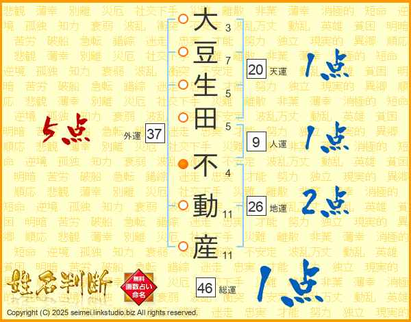大豆生田不動産さんの総運は46画の1点!