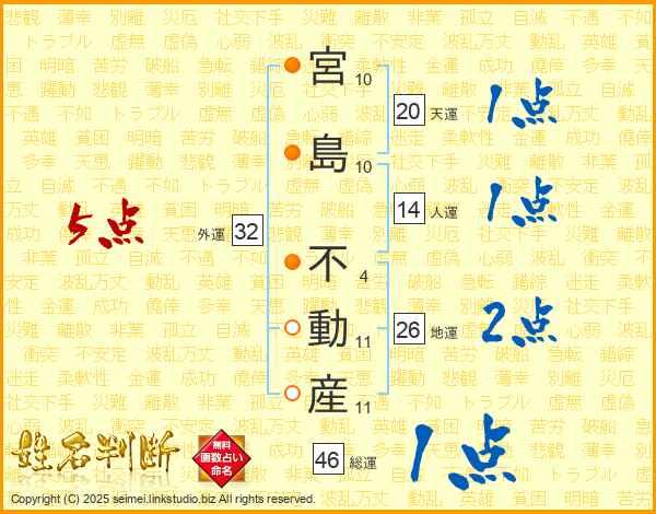 宮島不動産さんの人運は14画の1点!