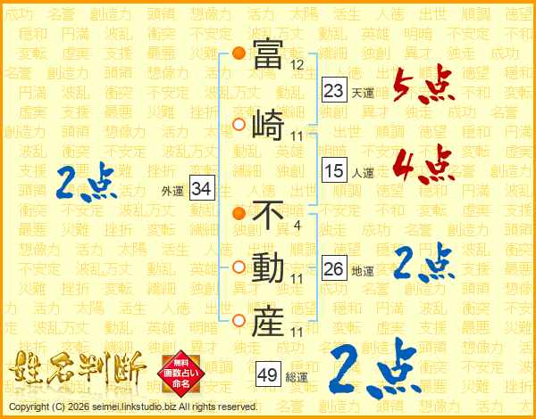 富(12画)崎(11画) 不(4画)動(11画)産(11画)