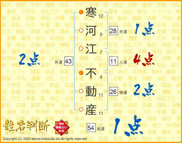 寒河江不動産さんの人運は11画の4点!