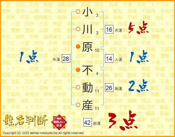 小川原不動産さんの人運は14画の1点!