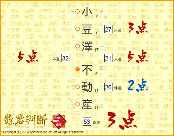 小豆澤不動産さんの人運は21画の5点!