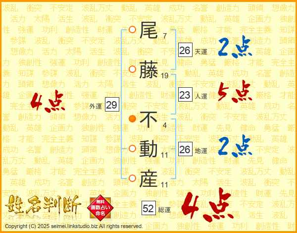 尾(7画)藤(19画) 不(4画)動(11画)産(11画)