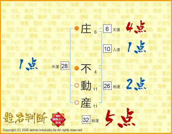 庄不動産さんの総運は32画の5点!
